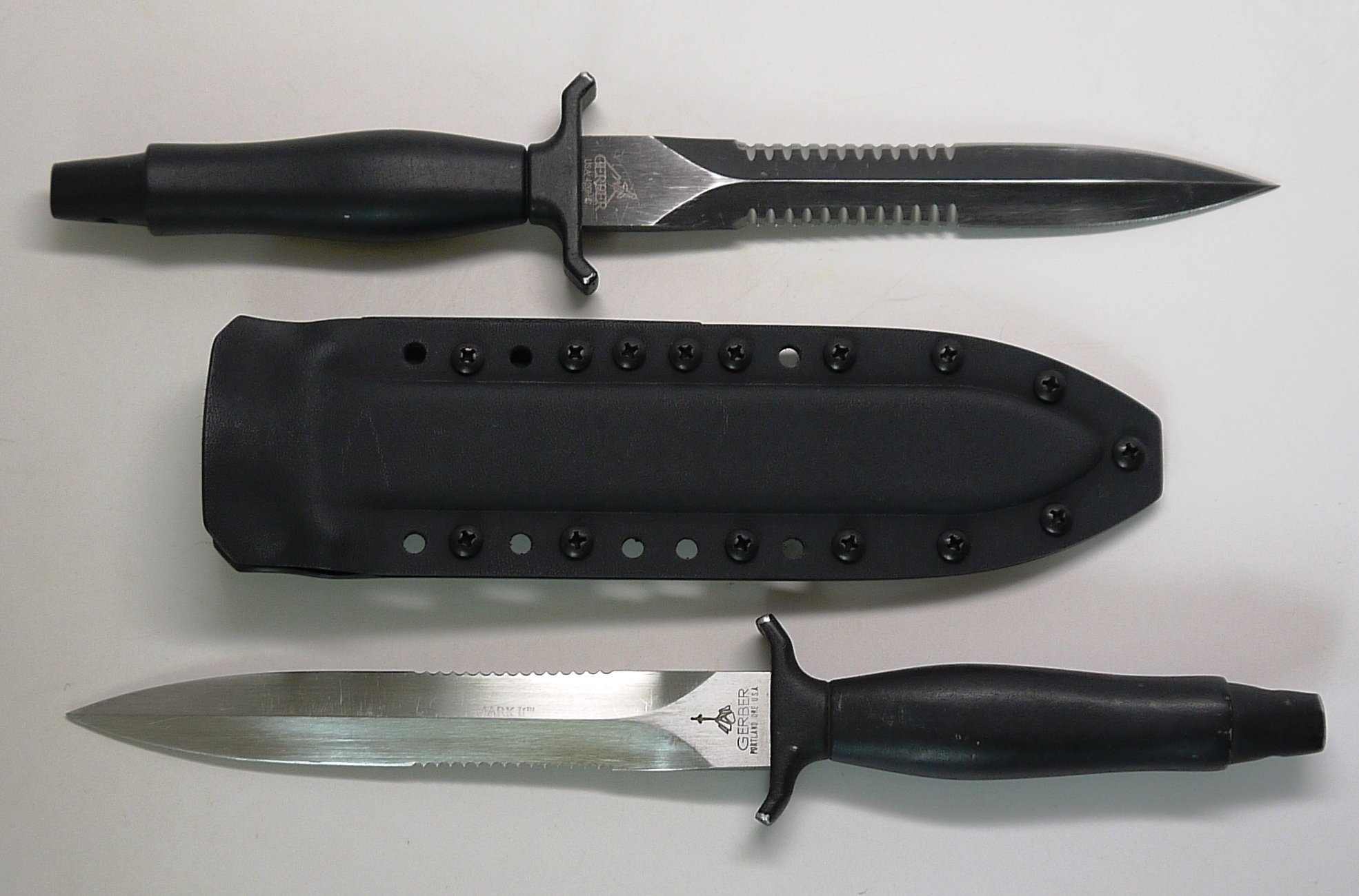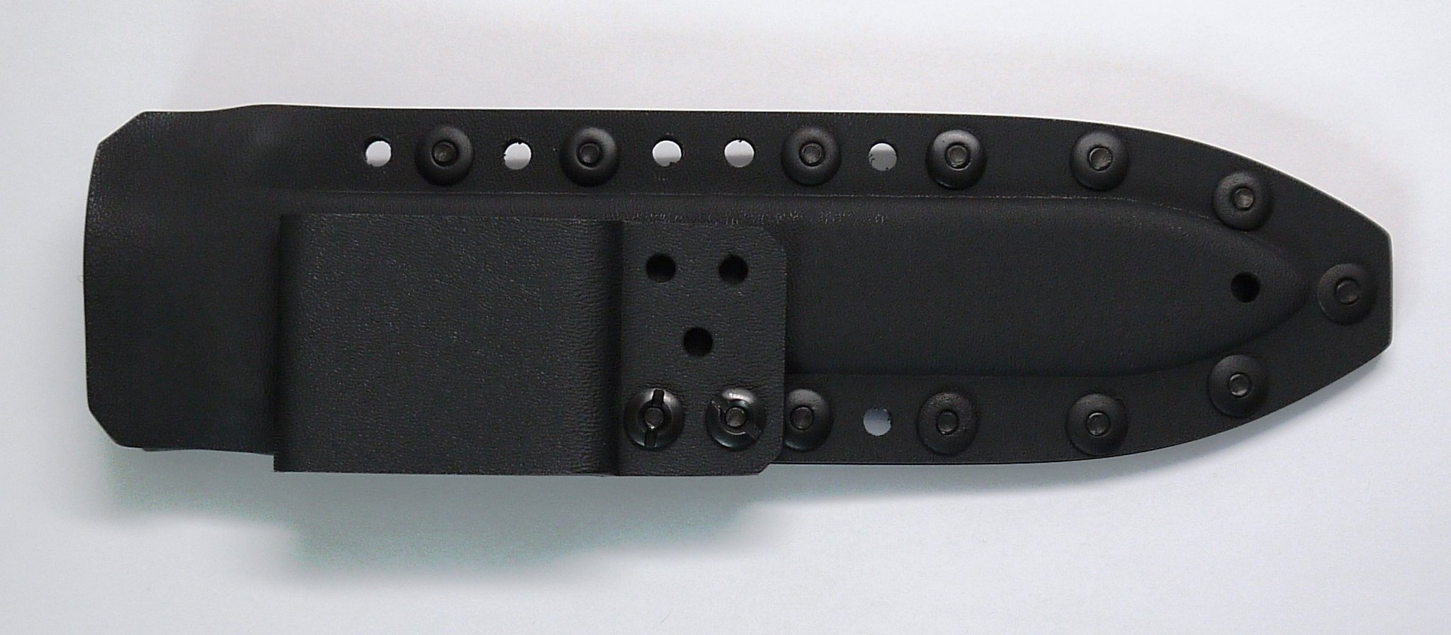 Made of .08 Black Kydex this sheath accepts the Gerber Mark II knives, old and new. Patent Pending design uses a synthetic lining to lend a hand allow a scratch and mar-free carry of quality knives without fear of damage that normal kydex sheaths can do, though extended hard use may reasonably “buff” some blades through the years. The sheath is designed to be modular to allow for more than a few carry positions based upon user preference or need. All holes are spaced to accommodate belt attachment (as much as 2″ belt, supplied), small, large, Molle and Tek Lok attachments. This allows the user to mount the sheath in any of these ways: Traditional vertical (left or right side), Horizontal (front or back, left or right), on a slight cant (cross draw, left or right) upside down. The sheath has drainage hole for waterborne activities and Will also be taken apart for cleaning and drying. As well as, the lining allows for a quiet insertion and lightning fast draw, with the good thing about a non-specific directional insertion. Sheath has excellent retention.