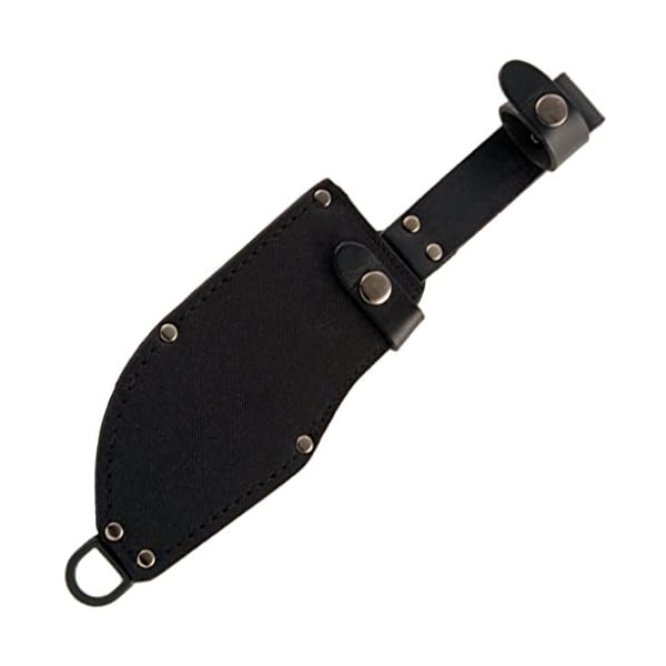 12 1/four” overall. 6 half” black end 1085 carbon steel wide design blade. Grooved black Kraton handles. Lanyard hole. Black cordura and leather belt sheath.