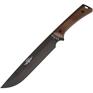 Famous in its own right with a historical background and a part of an American legend. 12″ overall. 7″ black epoxy powder covered partly serrated 1095 prime carbon steel blade with USMC tang stamp. Polished stacked leather Care for with black epoxy powder covered carbon steel guard and butt. Brown leather belt sheath with USMC brand.