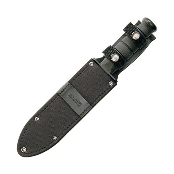 12 3/four” overall. 7 7/8″ partly serrated black epoxy powder lined 1095 Cro-Van steel blade. Black Kraton G Maintain with powder lined carbon steel Shield and pommel. Black leather and cordura belt sheath.
